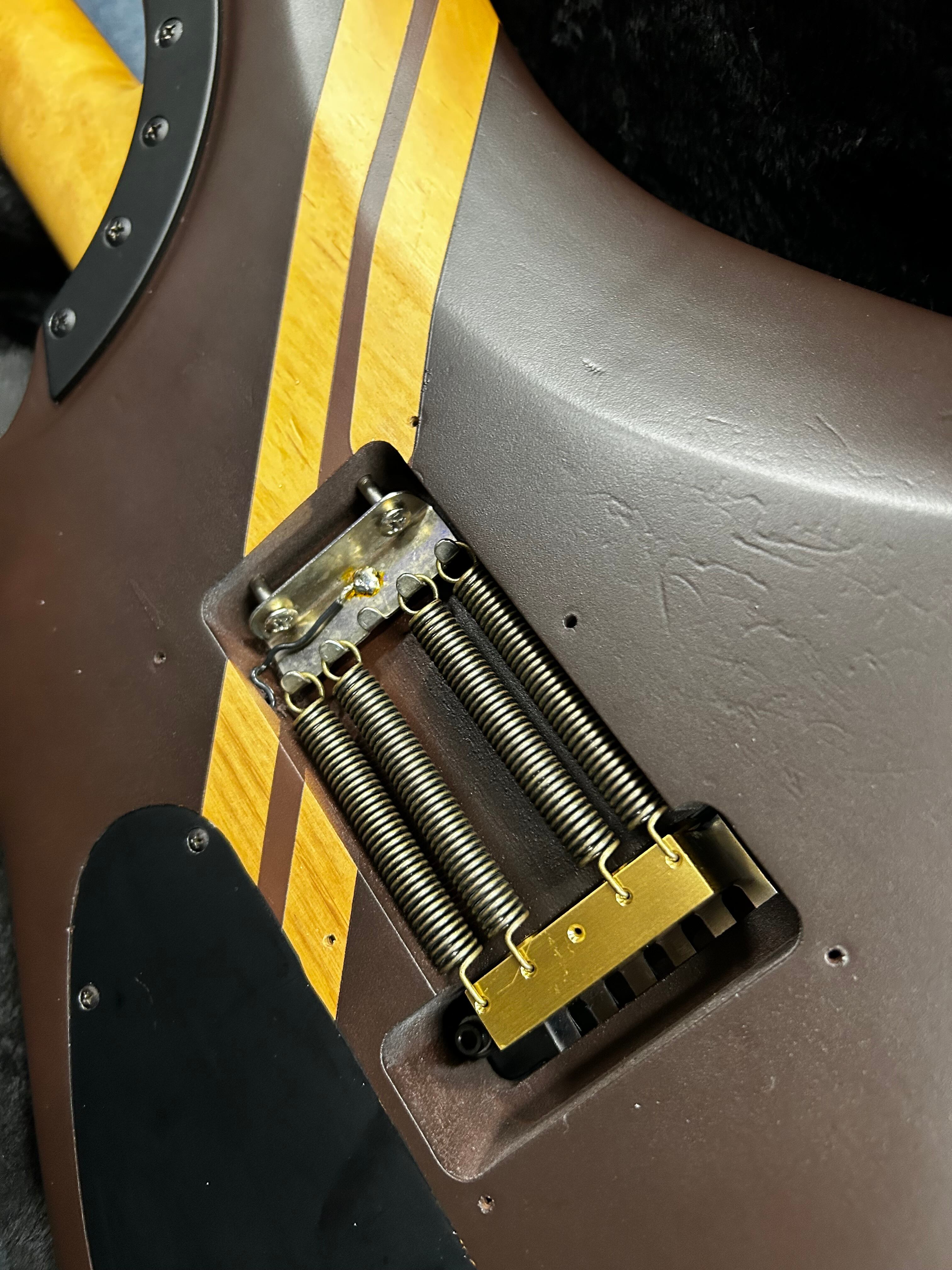 ラミネートストライプ風にリフィニッシュしてピックアップやブリッジパーツに拘り、アッセンブリーをアップグレード!