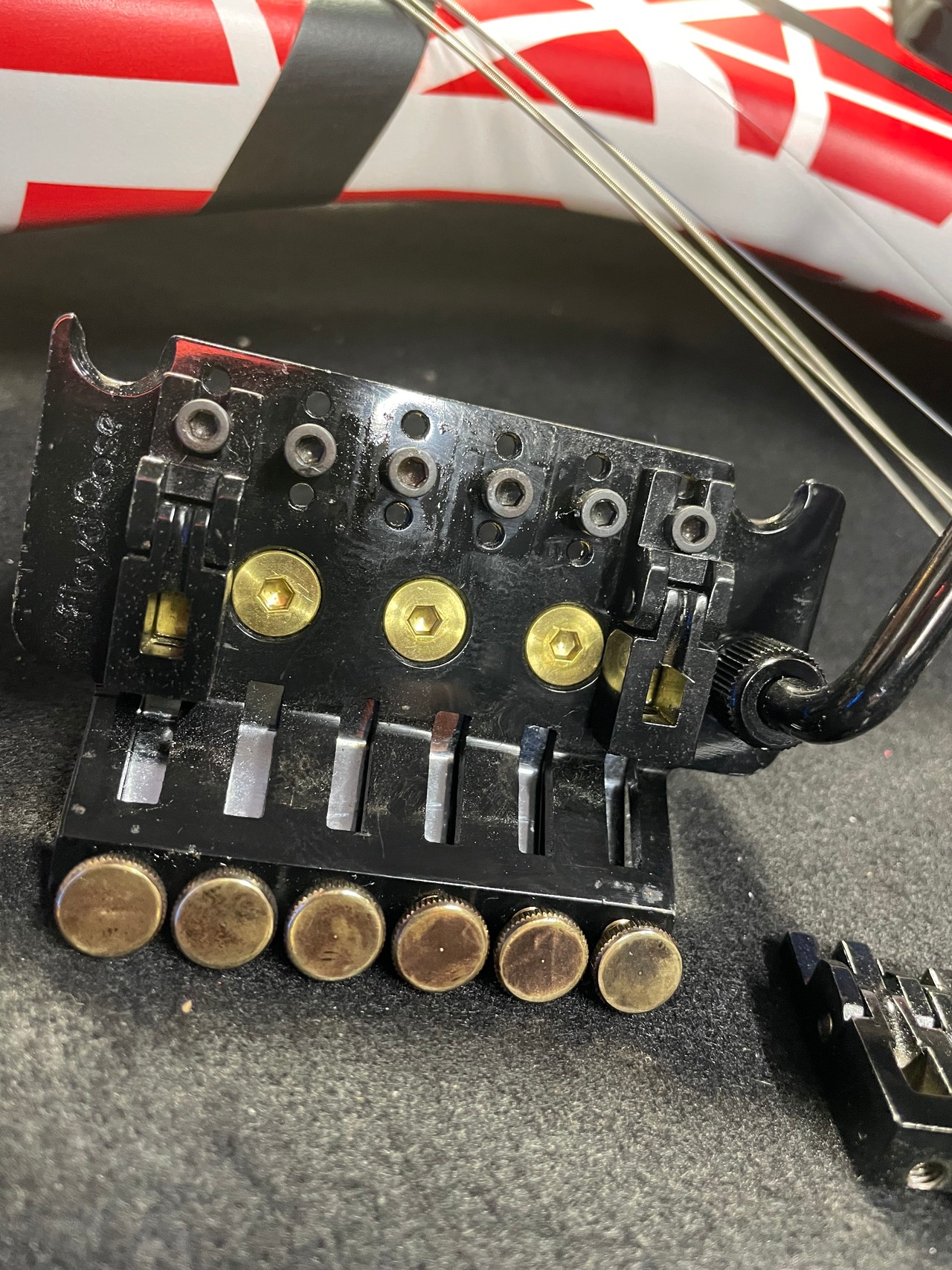 ・ドイツ製のoriginalフロイドローズにファインチューナーノブをブラス剥き出しにして